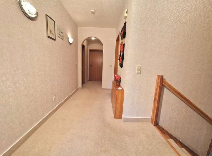 Zum Obergeschoss führt eine geschlossene Holztreppe. Hier, auf dieser Ebene, befinden sich vier Schlafzimmer (ca. 16,29 m², 16,29 m², 12,37 m² und 17,52 m²) in perfekter Aufteilung.