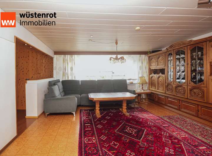 Das Erdgeschoss bietet einen großzügigen Wohn- und Essbereich sowie einen derzeit einfach gestalteten Küchenbereich, der sich individuell modernisieren lässt.