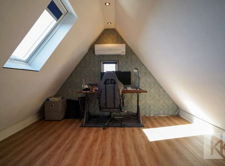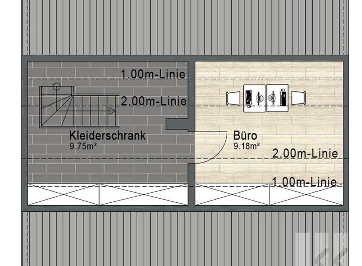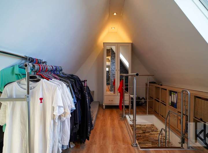 Im ausgebauten Dachgeschoss, welches ebenfalls über die Holztreppe erreicht wird, erwartet Sie ein geräumiges Ankleidezimmer und mit weiterem Platz für einen zusätzlichen Homeoffice-Bereich.
