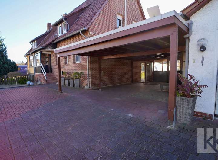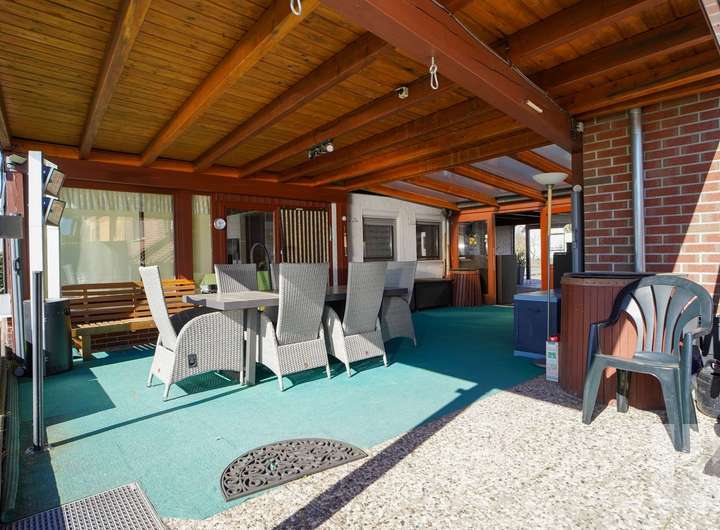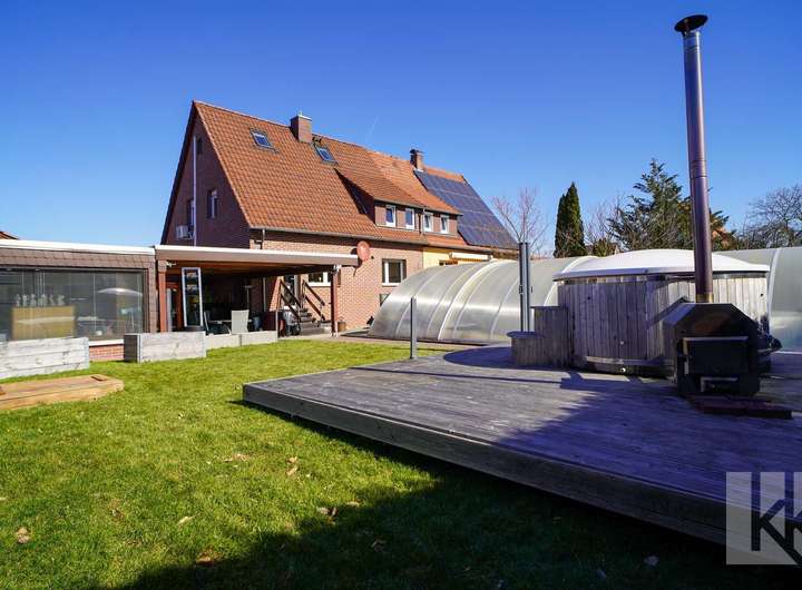 Zum Haus gehören ein Doppelcarport, eine Garage, ein Pool, ein separater Whirlpool sowie ein gemütliches Gästehaus. Aus dem Gästebereich haben Sie ebenso Zugang in den Garten.