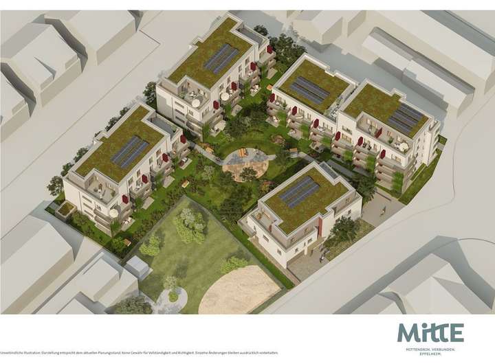 Im Zentrum von Eppelheim entsteht das neue Wohnquartier MittE. Es erwarten Sie moderne Eigentumswohnungen mit 3 bis 5 Zimmern und privaten Außenbereichen, die sich allesamt zur grünen Quartiersmitte orientieren. Freuen Sie sich auf ein komfortables neues Zuhause inmitten einer städtischen Umgebung und einer lebendigen Nachbarschaft. Es sind bereits 70 % aller Wohneinheiten verkauft.