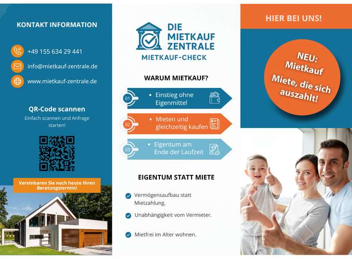 Miet-Kauf wird angeboten. Finanzierung ohne Eigenkapital möglich, bestehende Schulden sind kein Hindernis (Bonität vorausgesetzt). Fragen Sie nach unserem Miet-Kauf-Modell!