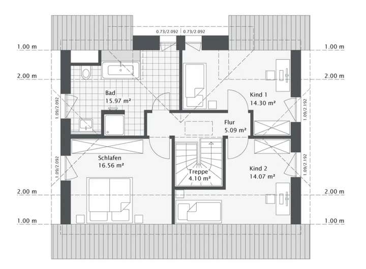 - auf Wunsch auch als Effizienzhaus 40 oder 40 Plus lieferbar