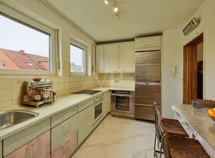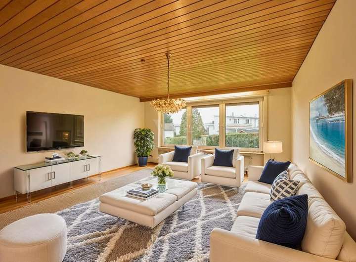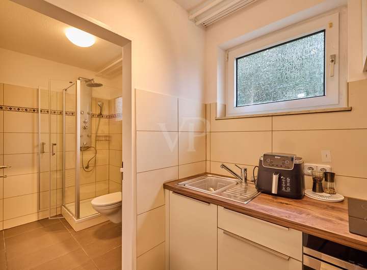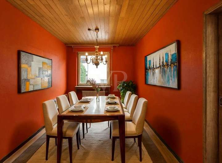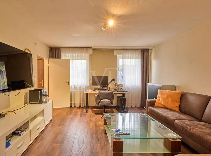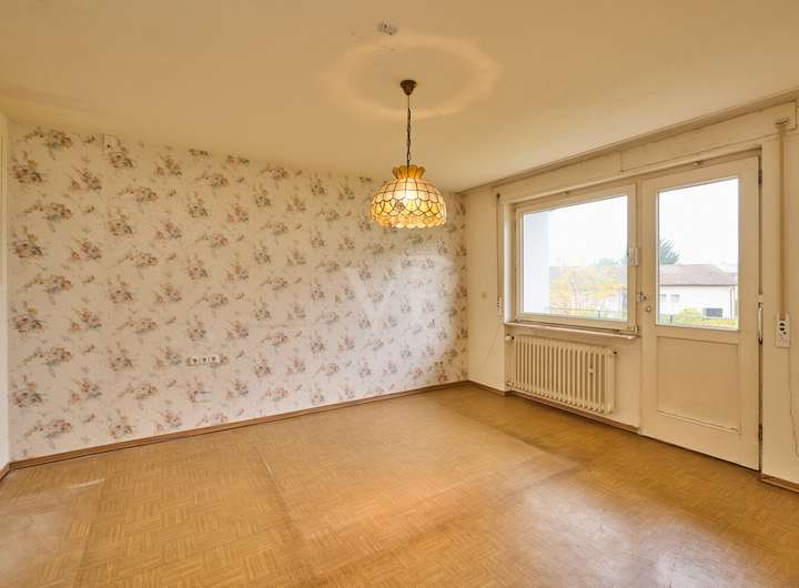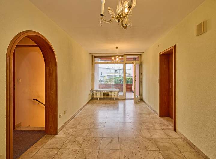 Das Haus empfängt Sie im Eingangsbereich mit einer offenen und freundlichen Atmosphäre und direktem Zugang zum Balkon. Von hier aus gelangen Sie direkt in den großzügig geschnittenen Wohnbereich mit schöner Aussicht auf den Garten. Die gut positionierten Fenster sorgen für eine angenehme Lichtstimmung und schaffen eine einladende Wohnlandschaft für gesellige Stunden mit Familie und Freunden. Direkt angrenzend befindet sich das separate offengehaltene Esszimmer, das ausreichend Platz für einen großen Esstisch bietet. Die offene Gestaltung ermöglicht kurze Wege zur angrenzenden Küche.