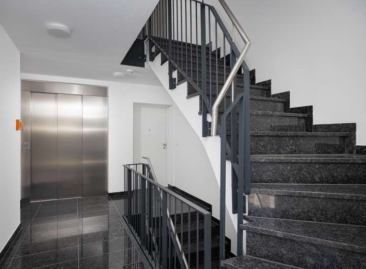 - Pflegearme Natursteinfliesen im Treppenhaus