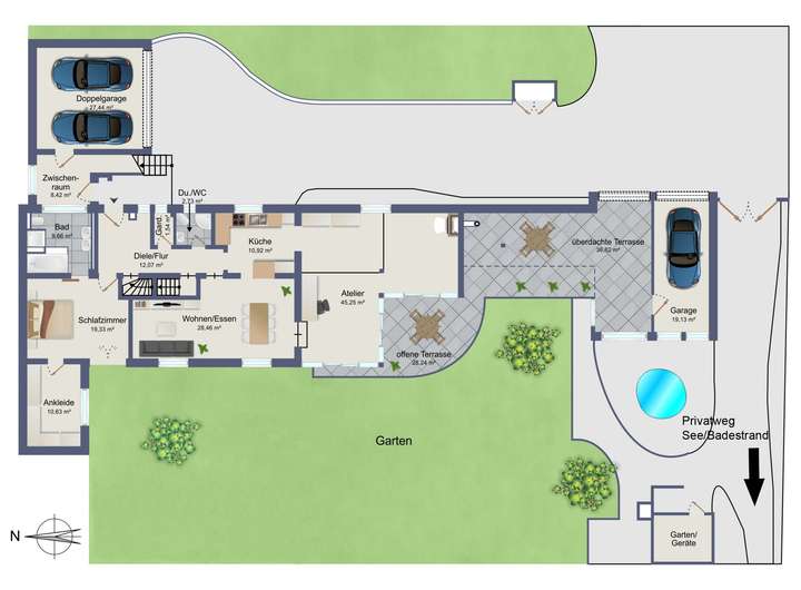 Für das Grundstück entwickelte die Eigentümerin bereits zusammen mit einem Architekturbüro exklusive Pläne zum Bau einer repräsentativen Villa oder eines modernen Dreispänners, eine Bauvoranfrage wurde in Auftrag gegeben.