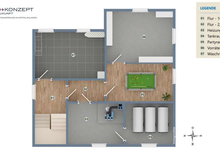 Solide Finanzierung Gerne begleiten wir Sie bei der Finanzierung, als Partner mit der Anbindung von über 400 Banken zeigen wir Ihnen Ihre Möglichkeiten. Bei uns sind Sie gut aufgehoben – vom ersten persönlichen Gespräch bis zur Schlüsselübergabe. Besichtigungstermin Ein Besichtigungstermin ist über unser Büro abzustimmen. Verkäufer- und Käuferprovision Der Verkäufer und der Käufer zahlen im Erfolgsfall an die Firma Immo + Konzept GmbH eine Verkäufer-und eine Käufer-Makler Provision in gleicher Höhe von 3,57 % (inkl. 19 % MwSt.) Provision errechnet sich aus dem beurkundeten Kaufpreis. Sonstiges Alle Angaben sind ohne Gewähr und basieren ausschließlich auf Informationen, die uns von unserem Auftraggeber übermittelt wurden. Wir übernehmen keine Gewähr für die Vollständigkeit, Richtigkeit und Aktualität dieser Angaben. Zwischenverkauf / Zwischenvermietung bleibt vorbehalten. Die Weitergabe dieses Exposees an Dritte ohne unsere Zustimmung löst gegebenenfalls Courtage- bzw. Schadensersatzansprüche aus.
