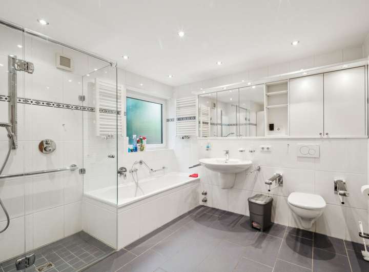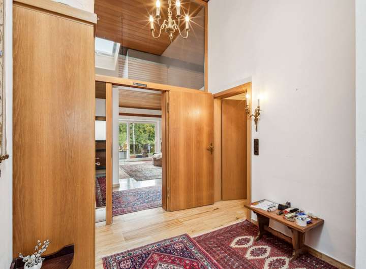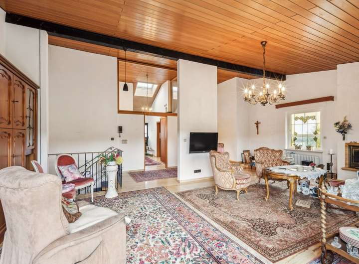 Dieses gepflegte Einfamilienhaus bietet auf zwei Ebenen großzügiges Wohnambiente und ein luftiges Raumgefühl dank giebelhohem Erdgeschoss. Die offene Gestaltung im Erdgeschoss sorgt für eine helle, einladende Atmosphäre und eine angenehme Verbindung von Ess- und Wohnbereich. Dank der Randlage und den großen Fensterflächen haben Sie einen fantastischen Blick in den Taunus.