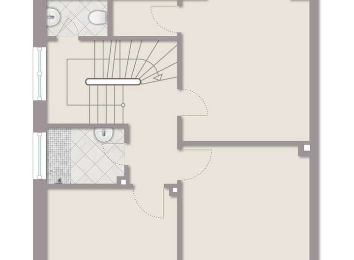 Im Erdgeschoß befinden sich der Eingangsbereich, das Gäste-WC (Zwischenebene) und der großzügig gestaltete Dielen- und Treppenhausbereich. Auf derselben Ebene sind eine großzügige Wohnküche und ein riesiges Wohnzimmer untergebracht.