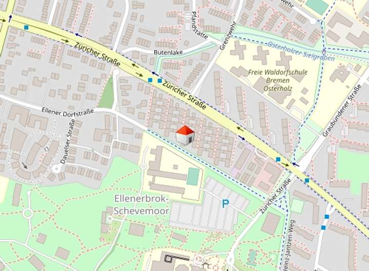 Die Züricher Straße 94 befindet sich in Bremen-Osterholz, einem ruhigen und familienfreundlichen Stadtteil, der sich durch viel Grün und eine angenehme Nachbarschaftsatmosphäre auszeichnet. Hier profitieren Familien von einer hervorragenden Infrastruktur und kurzen Wegen. Einkauf & Versorgung Supermärkte, Bäckereien und kleinere Geschäfte für den täglichen Bedarf liegen in der Nähe. Das große Weserpark-Center mit einem vielfältigen Angebot an Einkaufsmöglichkeiten, Restaurants, Kino und Freizeitangeboten ist nur wenige Minuten entfernt. Familienfreundlichkeit Kindergärten, Grundschulen und weiterführende Schulen sind schnell erreichbar – teilweise sogar fußläufig oder mit dem Fahrrad. Mehrere Spielplätze, Sportvereine und Freizeitangebote in der Umgebung machen das Viertel besonders attraktiv für Familien mit Kindern. Natur & Erholung Grünflächen und Parks in der Umgebung laden zum Spazieren, Radfahren oder Entspannen ein. Besonders beliebt sind der Osterholzer Park sowie der nahe gelegene Mahndorfer See, der an warmen Tagen für Abkühlung sorgt und das Freizeitangebot perfekt ergänzt. Verkehrsanbindung Die Anbindung an den öffentlichen Nahverkehr ist ausgezeichnet. Bus- und Straßenbahnlinien verbinden den Stadtteil in kurzer Zeit mit der Bremer Innenstadt. Über die A27 sind auch Ziele außerhalb Bremens schnell erreichbar. Fazit Die Lage vereint ruhiges, grünes Wohnen mit einer sehr guten Infrastruktur – ein idealer Lebensmittelpunkt für Familien, die eine gute Versorgung, kurze Wege und vielfältige Freizeitmöglichkeiten schätzen.