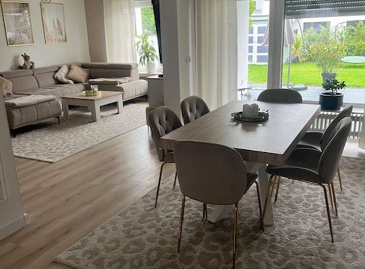 - im Erdgeschoss komplett neuer, pflegeleichter Boden ausgelegt (im Bad Fliesen)