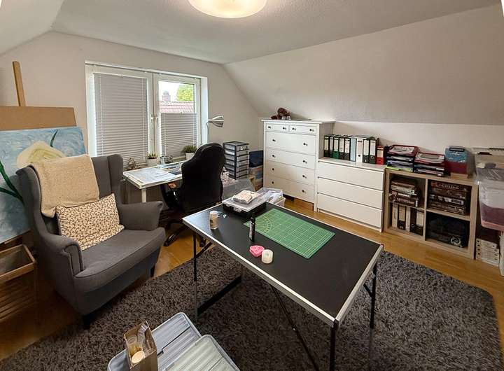 Das Obergeschoss beherbergt drei weitere Zimmer, die flexibel als Schlafzimmer, Gästezimmer oder Homeoffice genutzt werden können.