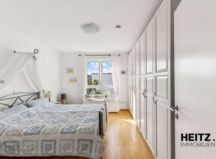 Im Obergeschoss befinden sich drei helle und großzügige Schlafzimmer, eine separate Ankleide mit Tageslicht und ein komfortables Bad mit Eckbadewanne, Dusche, Doppelwaschbecken und WC. Hier wurde Wert auf Helligkeit, Funktionalität und Wohnkomfort gelegt.