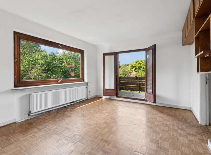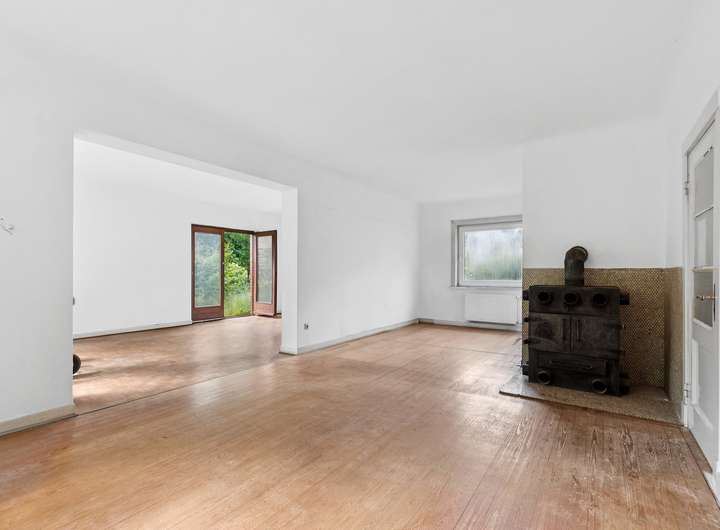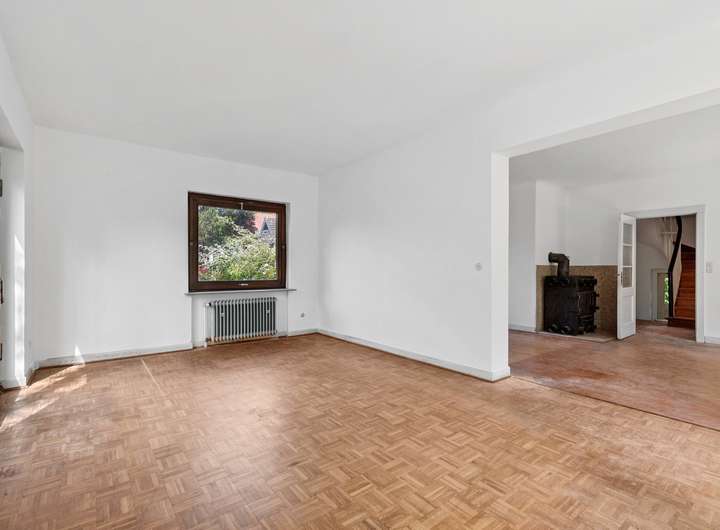 Dieses freistehende Einfamilienhaus wurde um 1935 errichtet und steht auf einem ca. 879 m² großen, eingewachsenen Grundstück in ruhiger Lage. Die Wohnfläche von ca. 136 m² verteilt sich auf zwei Etagen mit insgesamt fünf Zimmern. Das Erdgeschoss überzeugt durch großzügige Fensterflächen, die den Blick ins Grüne freigeben und für angenehmes Tageslicht sorgen. Der Wohnbereich bietet einen direkten Zugang zur Terrasse und schafft eine natürliche Verbindung zum Garten. Eine geschwungene Holztreppe führt in das Obergeschoss, wo sich weitere Räume mit Blick in den Garten befinden. Charakteristische Elemente wie hohe Decken, Dielenböden und originale Türen sind erhalten und prägen das Haus bis heute. Die Immobilie befindet sich in einem sanierungsbedürftigen Zustand. Für Käuferinnen und Käufer mit Sinn für historische Bausubstanz und dem Wunsch nach individueller Gestaltung bietet sich hier die Möglichkeit, ein Altbauhaus grundlegend neu zu denken. Die bestehende Raumstruktur kann flexibel interpretiert und an moderne Ansprüche angepasst werden. Das Grundstück ist großzügig, ruhig gelegen und durch alten Baumbestand geprägt. Eine Garage ist vorhanden. Die gute Aufteilung bietet bereits heute eine solide Grundlage für verschiedene Wohnkonzepte. Durchdachte Modernisierungen lassen sich hier mit dem ursprünglichen Charme des Hauses verbinden. Eine Besichtigung vor Ort vermittelt den besten Eindruck von der Atmosphäre und dem Potenzial dieser besonderen Immobilie.