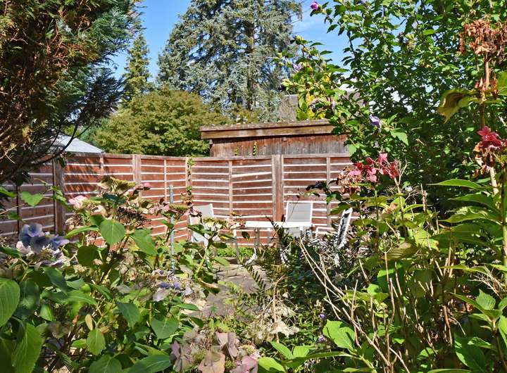 Eingefasst mit diversen Stauden und Heckenpflanzen ist das Grundstück nahezu uneinsehbar und bietet den Bewohnern ein absolutes Höchstmaß an Privatsphäre.