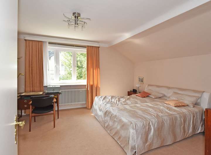 Eine etwas steilere Holztreppe geleitet in das ausgebaute Dachgeschoss. Diese beherbergt derzeit zwei solide geschnittene Schlafzimmer, ein Vollbad sowie ein kleineres, halbes Zimmer, mit Zugang auf den Balkon.