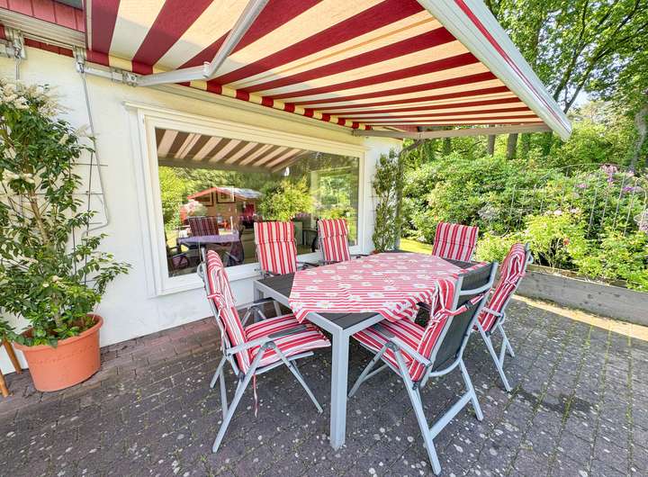 Die Auffahrt sowie die Terrasse wurden neu gepflastert, sodass auch die Außenanlagen einen hervorragenden Eindruck hinterlassen. Eine geräumige Garage rundet das Angebot ab.
