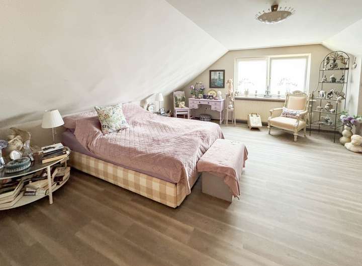 Mit einer Wohnfläche von 150 m² bietet dieses Haus alles, was sich Familien wünschen: 5 Zimmer, aktuell als 4 großzügige Räume gestaltet, verteilen sich auf ein lichtdurchflutetes Erdgeschoss und ein ausgebautes Dachgeschoss. Große Fenster und ein kluger Grundriss schaffen ein offenes Wohngefühl, während gemütliche Rückzugsorte erhalten bleiben.