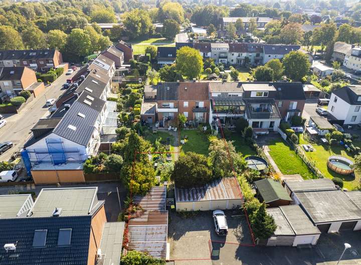 In gefragter Lage von Kaarst - Reihenhaus mit zwei vermieteten Wohneinheiten und 9 Wellblech-Garagen