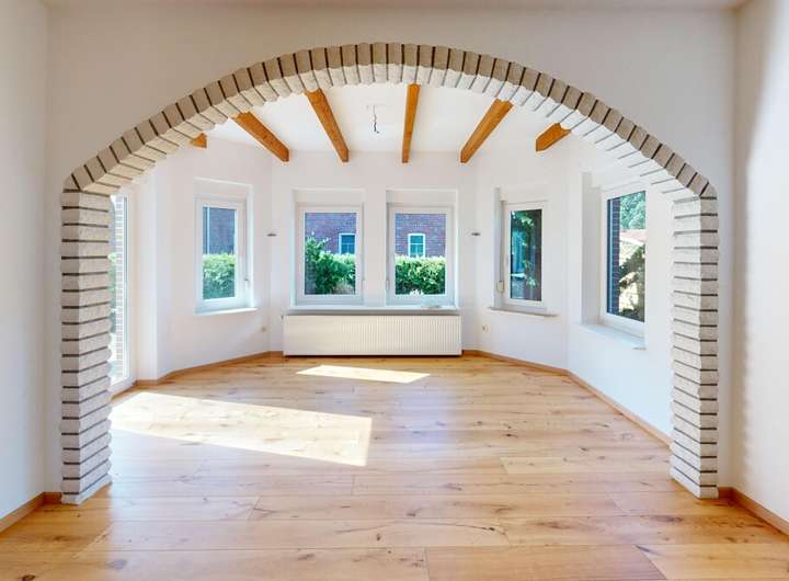 -Renovierung der Erweiterung in diesem Jahr: Frischer Anstrich, neue Innentüren, Parkett im Wohnzimmer, neue Bodenbeläge im Dachgeschoss