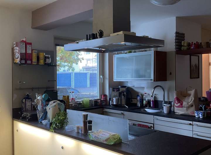 Die Erdgeschosswohnung besticht durch die moderne Einbauküche und den offenen Kamin.