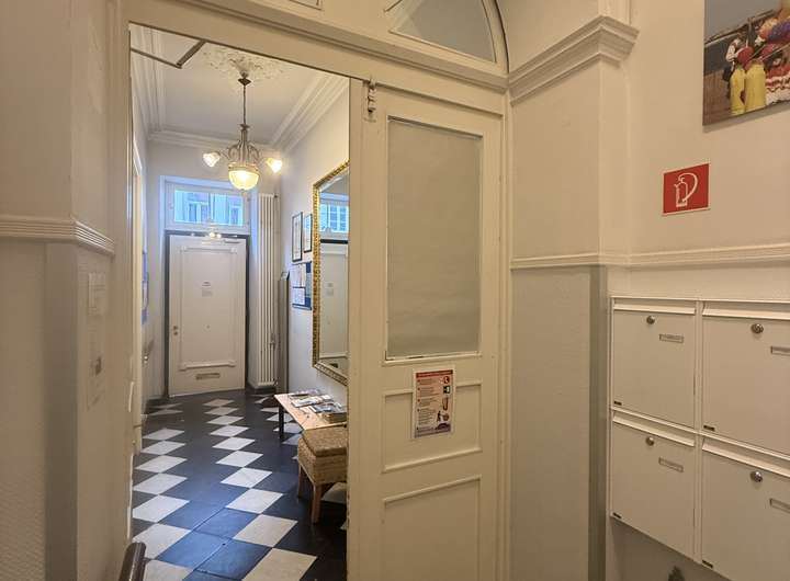 Die Whg. ist geeignet für Einzelpersonen oder Paare, da nur ein Schlafzimmer existiert. Tagsüber ist im Erdgeschoss und in der ersten Etage Patientenverkehr von zwei psychotherapeutischen Praxen.