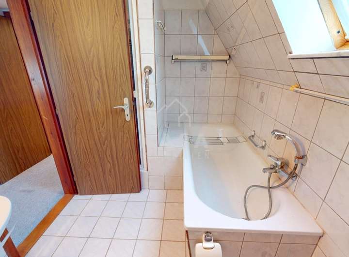 - Badezimmer mit Badewanne und Dusche im Obergeschoss