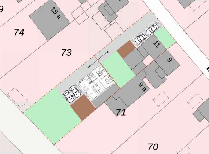 Angeboten wird ein Baugrundstück in Köln-Mülheim, die noch zu vermessene Teilfläche misst rund 570 m². Die Fläche liegt in zweiter Reihe hinter einem bestehenden Gebäude und wird über das vordere Grundstück erschlossen.