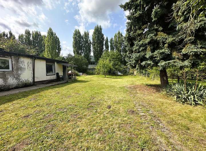 Auch kann das Grundstück geteilt und mit zwei separaten Gebäuden bebaut werden. Falls Sie also Interesse an der Hälfte des Grundstücks haben, können Sie uns auch hierfür ein Angebot unterbreiten.