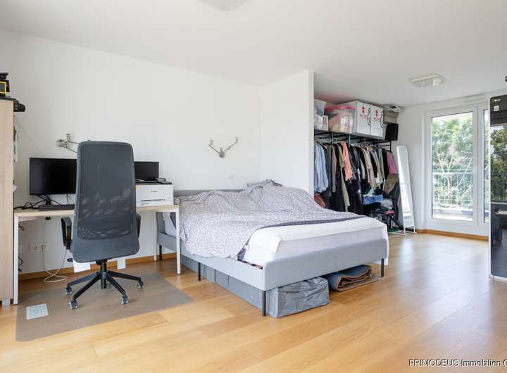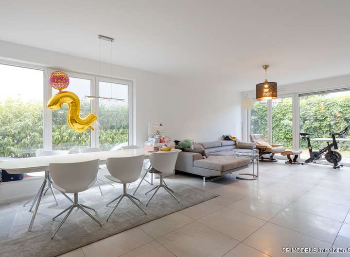 Dank großer Fensterflächen ist jeder Raum angenehm hell und freundlich gestaltet. Hochwertige Bodenbeläge, moderne Fenster und eine komfortable Fußbodenheizung schaffen ein zeitgemäßes Wohnambiente mit Wohlfühlcharakter.