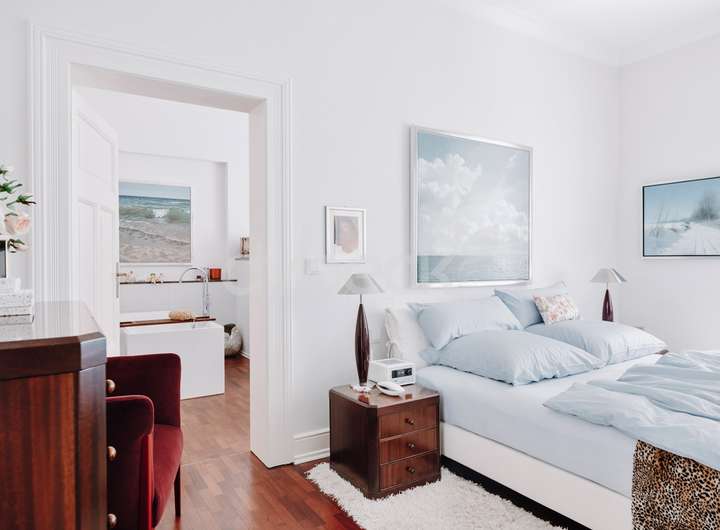 - Großzügiges Bad, modernisiert 2017, mit Paradiso-Granit, Dornbracht-Armaturen, Dusche und freistehender Wanne