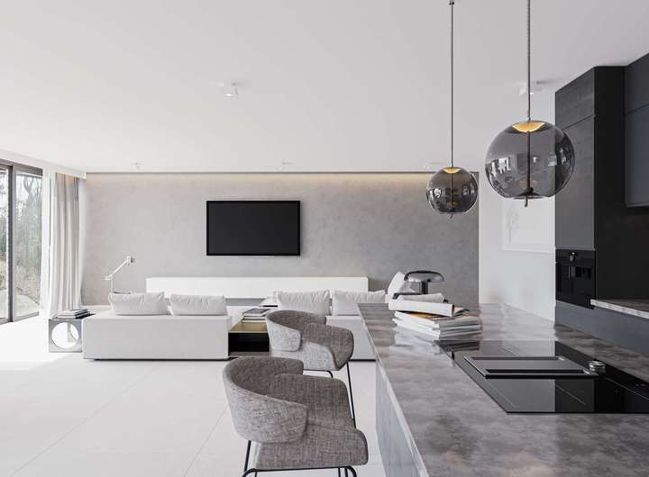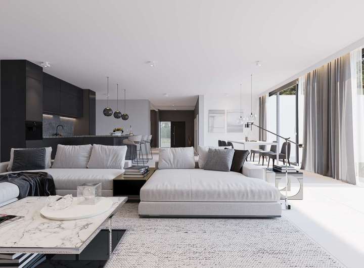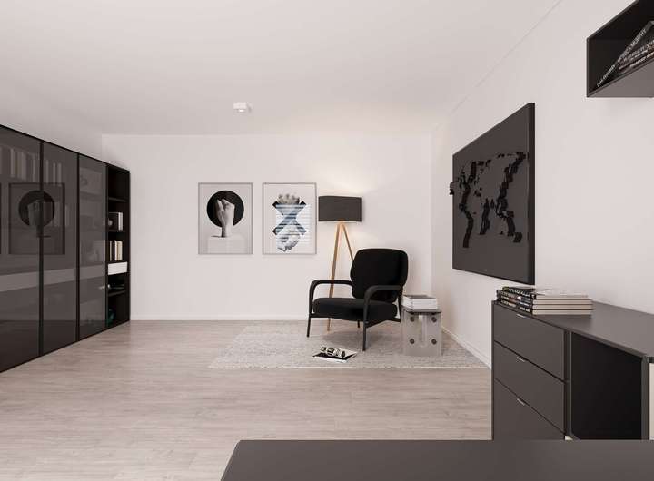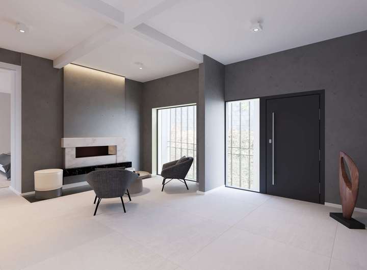 Das Haus selbst beeindruckt durch seine klare, durchdachte Architektur und einen besonderen Grundriss, der Offenheit und Geborgenheit zugleich vermittelt. Bodentiefe Fenster durchfluten die Räume mit Licht und verbinden Innen- und Außenraum auf harmonische Weise. Der großzügige Wohnbereich mit seinem charakteristischen Loftcharakter und der offene Kamin im Entrée schaffen eine warme, einladende Atmosphäre – perfekt, um Gäste zu empfangen oder ruhige Abende zu genießen.