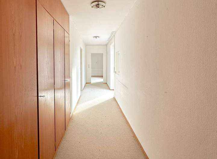 Die Küche, derzeit noch abgetrennt, lässt sich mit wenigen architektonischen Eingriffen zu einem modernen Herzstück des Hauses öffnen – ein Raumkonzept, das Individualisten und Designliebhaber gleichermaßen begeistert.