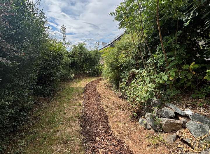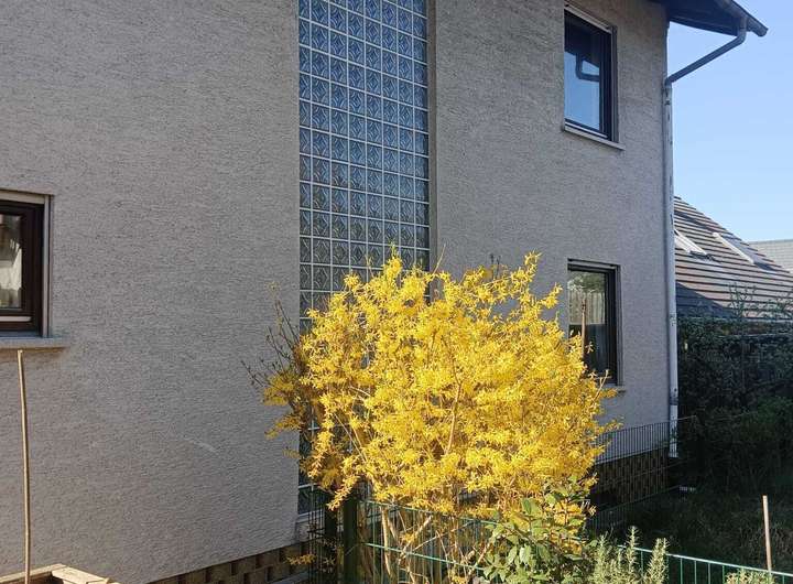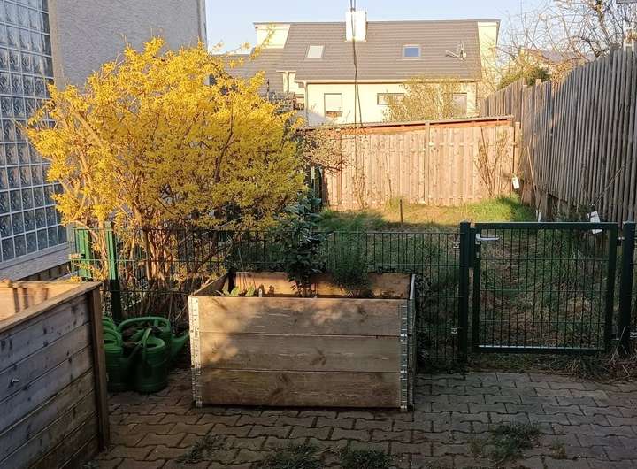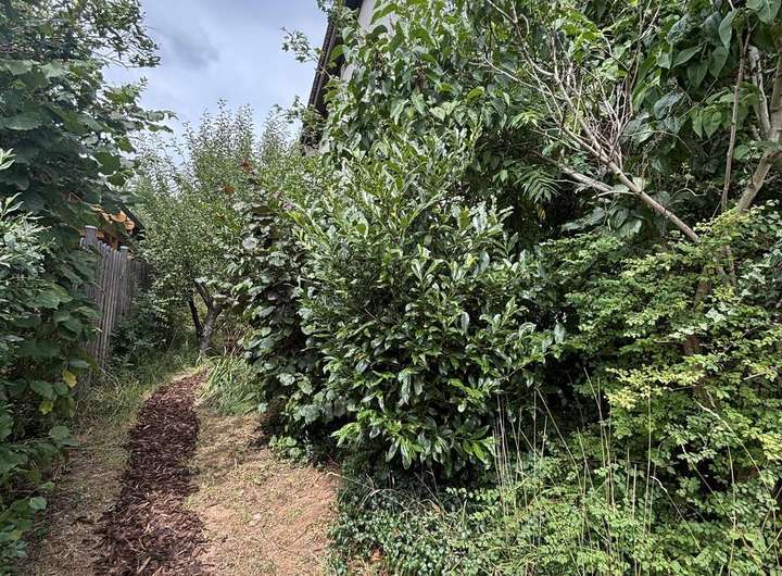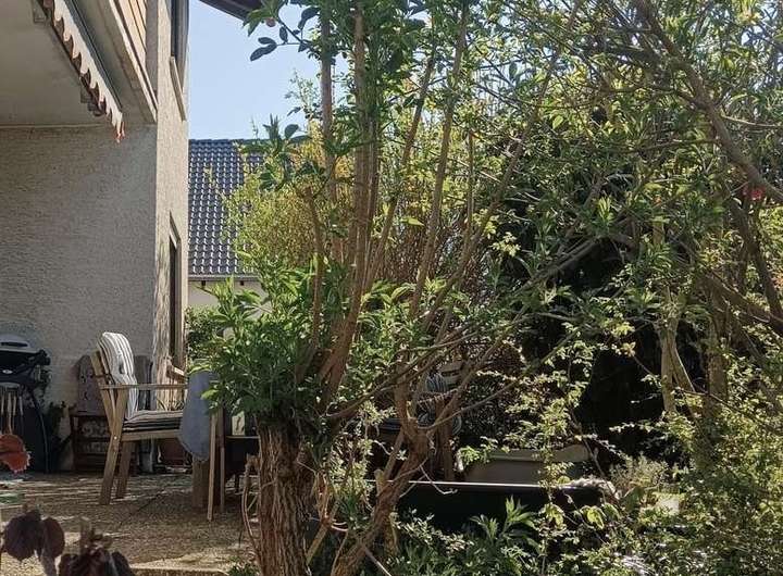 Der gewachsene Garten erstreckt sich um das gesamte Haus herum, so dass Sie je nach Wunsch immer einen Sonnen- oder Schattenplatz finden. Die Sonnenterrasse bietet viel Platz zum Grillen und Verweilen. Auf der Wiese hinterm Haus können Ihre Kinder sicher spielen.