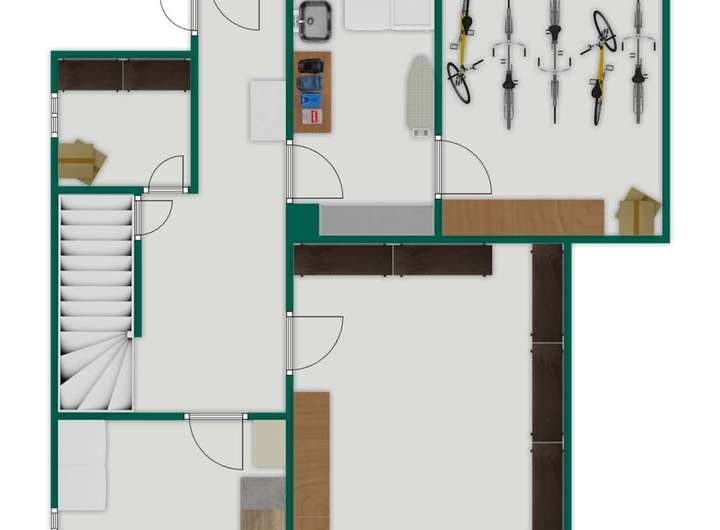 Das Haus ist vollständig unterkellert. Sie erreichen den Keller sowohl über die Treppe im Haus, als auch über einen Außeneingang. 5 Lagerräume und ein Waschraum bieten viel Stauraum.