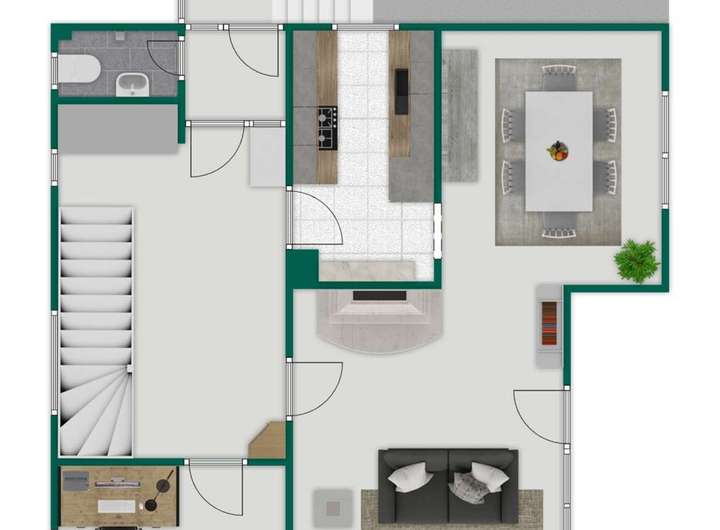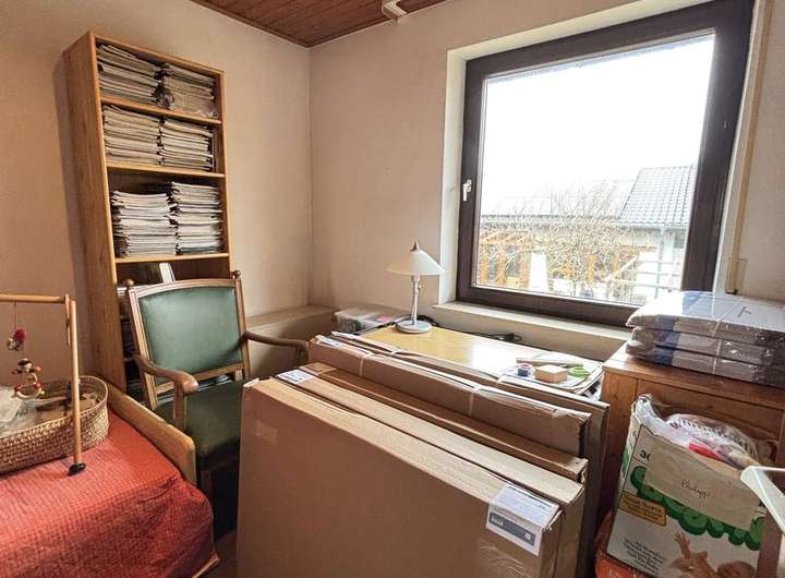 Sie betreten das Haus durch die moderne Eingangstür, die vor kurzer Zeit erneuert wurde. Der Flur verfügt über viel Platz und ist somit ideal, um Jacken, Schuhe, Taschen etc. ordentlich zu verstauen. Das Erdgeschoss besticht durch ein großes, tageslichthelles Wohnzimmer mit Zugang zur Terrasse und einen angrenzenden Essbereich, der ausreichend Platz für einen großen Esstisch bietet. Gemütlichen Abenden mit der ganzen Familie oder mit Ihren Freunden steht hier nichts im Wege. Die Küche befindet sich separat neben dem Essbereich. Sie lässt sich mit wenig Aufwand auf Wunsch zu einer offenen Küche umbauen. Ein Gäste-WC und ein Schlaf- oder Arbeitszimmer runden das Platzangebot auf dieser Etage ab.