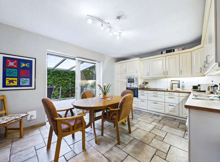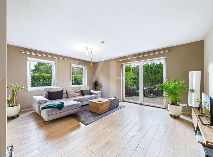 Der Außenbereich überzeugt mit einer gemütlichen Terrasse und einem gepflegten Garten, der Raum für Erholung und kleine Freizeitaktivitäten bietet – pflegeleicht und harmonisch gestaltet. Eine angrenzende Garage mit Platz für mindestens zwei PKW und Fahrräder, direktem Zugang zum Haus sowie zusätzlichen Stellplätzen im Außenbereich rundet das Angebot ab und sorgt für hohen Alltagskomfort.