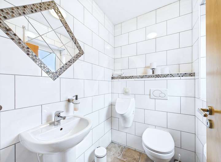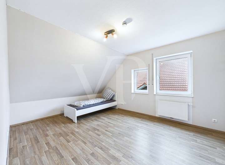 Das Obergeschoss umfasst drei freundlich gestaltete Schlafräume, die flexibel als Kinder-, Arbeits- oder Gästezimmer genutzt werden können. Ergänzt wird die Etage durch eine weitere Küche und ein helles Familienbad mit Badewanne, Dusche und Fenster, das für ein angenehmes Raumgefühl und hohen Wohnkomfort sorgt.
