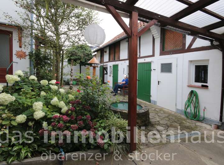 * großes Fachwerknebengebäude mit viel Nebengelass, u.a. Gartenzimmer, Werkstatt, Garage