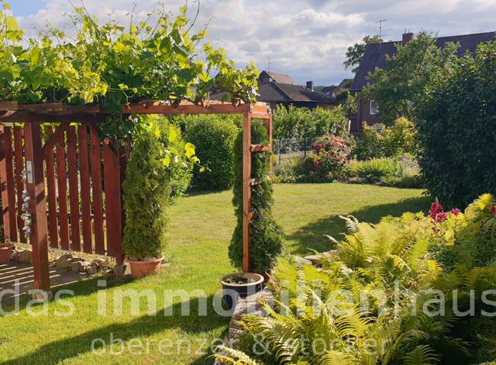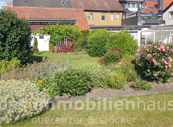 Gartenfreunde können sich auf dem herrlichen Gartengrundstück austoben: Mehr als die Hälfte des fast 900 m² großen Grundstücks sind gärtnerisch angelegt mit Hecken und Sträuchern, Bäumen und Blumenrabatten. Es ist durchaus denkbar, dass man mit diesem Grundstücksbereich auch andere Pläne verwirklichen kann.