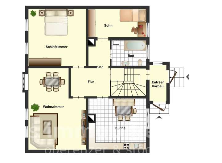 * OG-Wohnung mit 4 Zimmern, u.a. Küche mit Esszimmer kombiniert