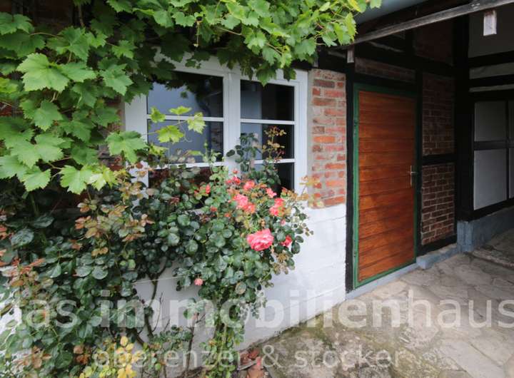 * Teils Fachwerkbauweise (Straßenfassade), teils massiv erneuert (Gebäuderückseite, HLZ Poroton)
