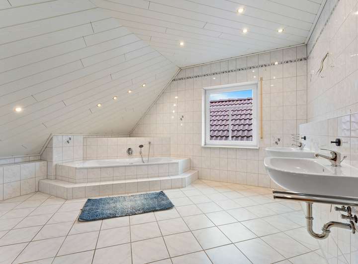 Das absolute Highlight ist die ca. 40 m² große, hochwertig ausgebaute Garage, die zur geräumigen Wohnküche mit moderner Einbauküche und Kochinsel umgestaltet wurde. Von hier aus gelangen Sie direkt in den lichtdurchfluteten Sommergarten, welcher ebenfalls zu gemütlichen Abenden einlädt. Des Weiteren ist zu erwähnen, dass das Dachgeschoss weitere genehmigte Wohnfläche zur verfügung stellt. Ein praktischer Abstellraum mit Heiztherme rundet das Erdgeschoss ab.