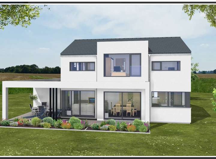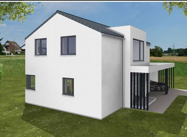 2 geschossiges Satteldachhaus in modernen Villenstil in KFW 40 plus Bauweise mit 145 qm Wohnfläche als Selbstversorger Haus Schlüsselfertig. Carport und überdachter Terrasse. kann dazu gekauft werden.