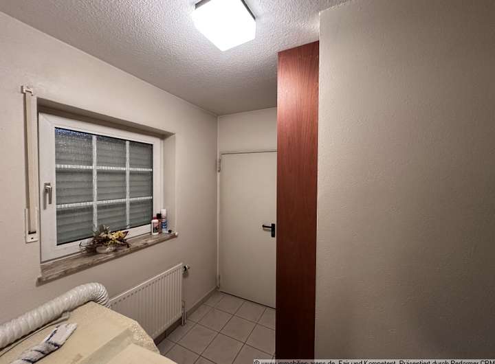 Gut ausgestattetes Wohnhaus mit Garage und Carport (BJ 1993). Das Wohnhaus mit Satteldach, Krüppelwalm und Tonziegeleindeckung enthält im Erdgeschoss das große Wohn- und Esszimmer mit Zugang zum Wintergarten, Arbeits- oder Schlafzimmer, Küche, Hauswirtschaftsraum, Gäste-WC und Diele. Gemütlicher Wintergarten zur Sonnenseite. Im Obergeschoss befinden sich Schlafzimmer, 2 Kinderzimmer, Badezimmer, Abstellraum/Heizungsraum und Flur. Die Wohnfläche beträgt rd. 173 m². Aufteilung siehe Grundriss Anlage. Der Spitzboden ist verdielt, die Seitenflächen isoliert und vertäfelt und als zusätzliche Nutzfläche zu gebrauchen.