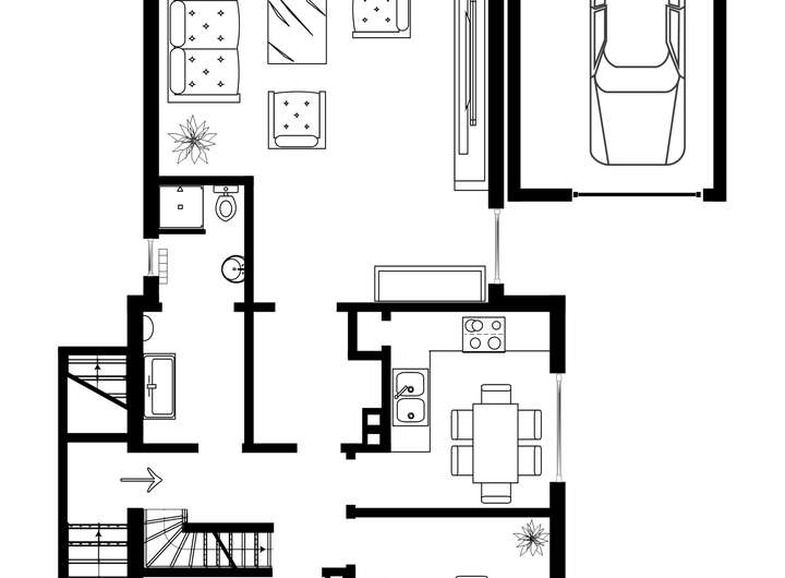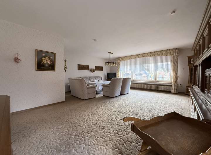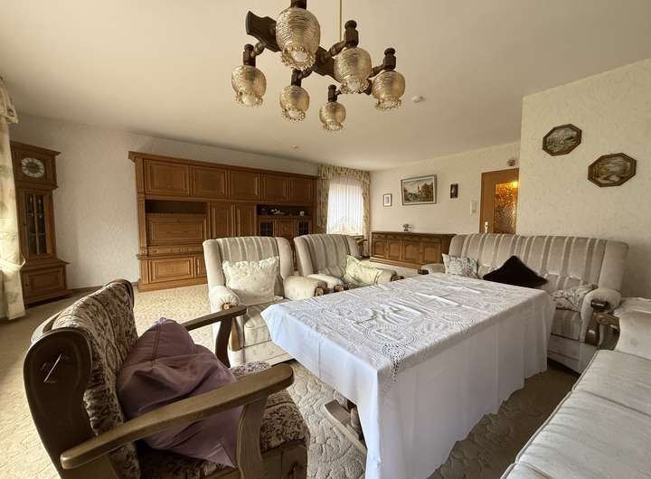 Somit bietet das Haus im Erdgeschoss auf ca. 100 m² ein modernisiertes Bad, Küche, Esszimmer, Schlafzimmer, Durchgangsflur und ein großes, helles Wohnzimmer mit knapp 40 m² Wohnfläche.