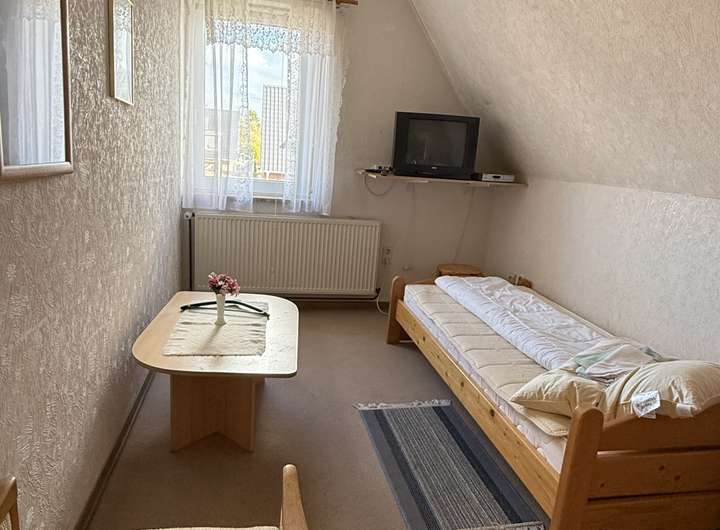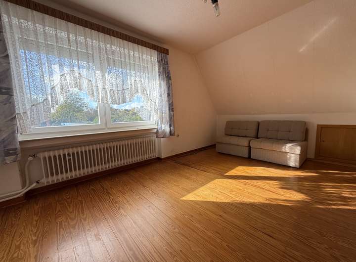 Im Obergeschoss befindet sich außerdem ein weiteres Zimmer, welches als Küche oder Aufenthaltsraum genutzt werden kann. Von hier gelangt man bei Bedarf auch in die Einliegerwohnung.