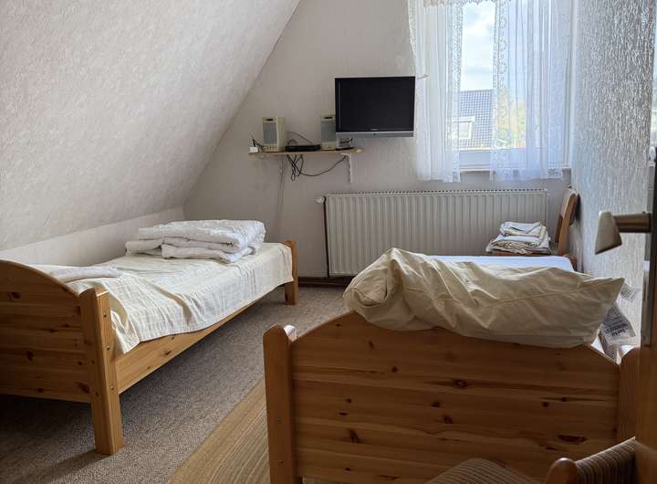 Beim Betreten befindet man sich in einem kleinen Flur, das Duschbad ist von hier erreichbar. Weiterhin stehen 2 Schlafräume und eine Wohnküche zur Verfügung.