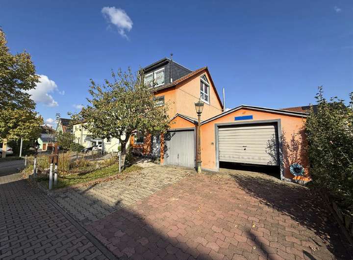 Einzelgarage und Carport mit 2 Stellplätzen davor