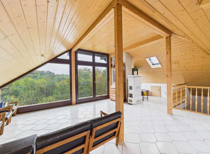 Zu dem Haus gehören drei Garagen, welche direkt mit dem Haus verbunden sind. Somit gelangen Sie vom Auto direkt ohne Umwege in das Wohngebäude. Über den Garagen befindet sich ein zum Loft ausgebauter Raum mit eigenem Balkon - ein Paradies für Kreative, Sammler, Schrauber oder Home-Office mit Abstand.